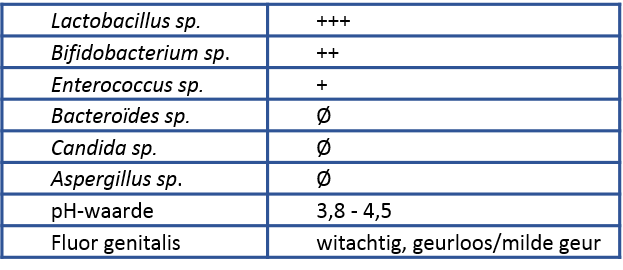 De normale samenstelling van de vaginale biota ziet er in grote lijnen als volgt uit: